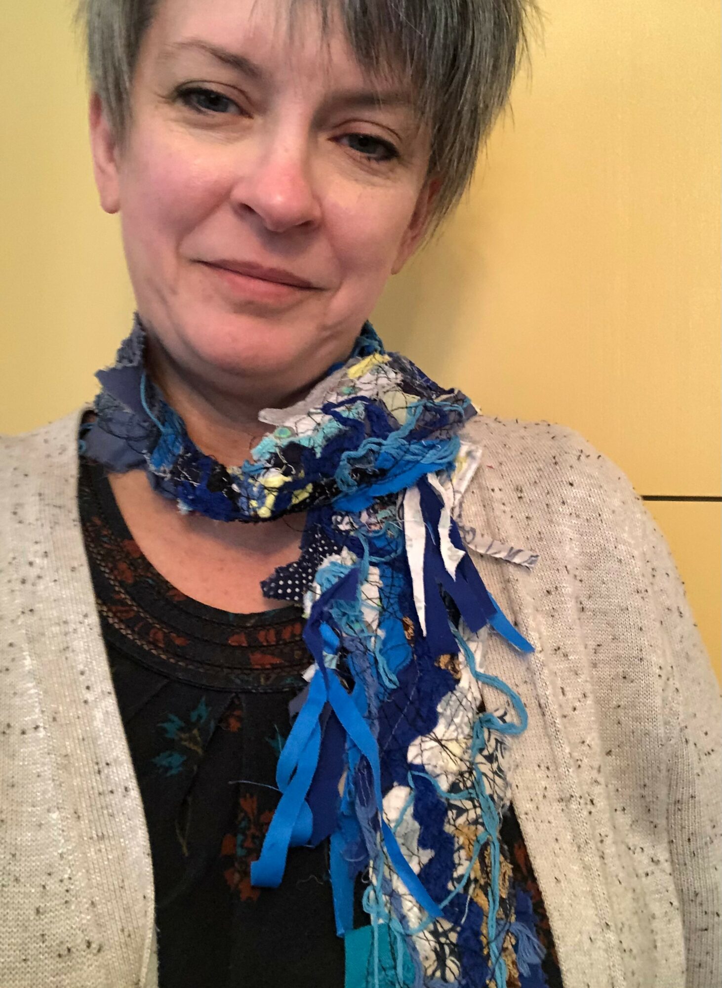 I am the owner and artist of Snark & Soul through which I sell handmade, upcycled art and wearables. I began my work life as an artist, then switched to mental health therapy with children and adolescents. During the pandemic, my home office was also my art and craft room, which reignited my identity as an artist. Read more>>