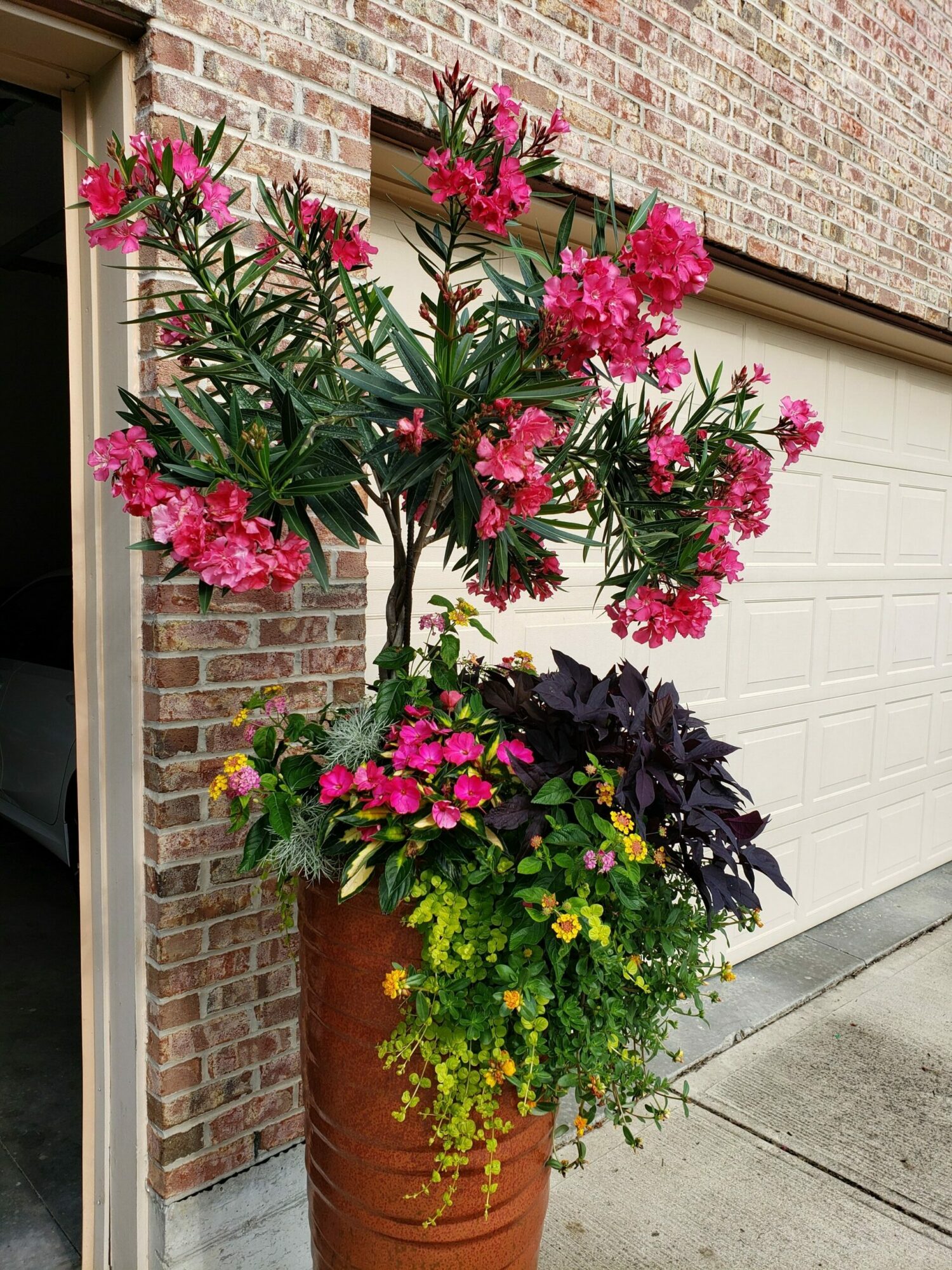 I was a fashion designer in NYC. I moved here thirty years ago after starting a family. I knew nothing about a yard. I worked with two gardening friends and learned about their design style and plant choice. Both of them have completely different styles. Once I had the basic knowledge of what will allow plants to thrive (sun/shade/water availability/soil type…etc.) I took my design background and moved it into plants, landscape, and planter design. I look for movement in the plants (as I do with fabric), color, the background (is there a fence, a house a wall, existing plants that will be kept). I have a pool and started with designing planters around the pool, very large planters. People started admiring them at my home and asked me to design theirs. From there, I was asked to design landscapes. I learned CAD and took extensive landscape design courses providing clients with a CAD-generated 360 view of their new landscape design, which can include a walk-through.
