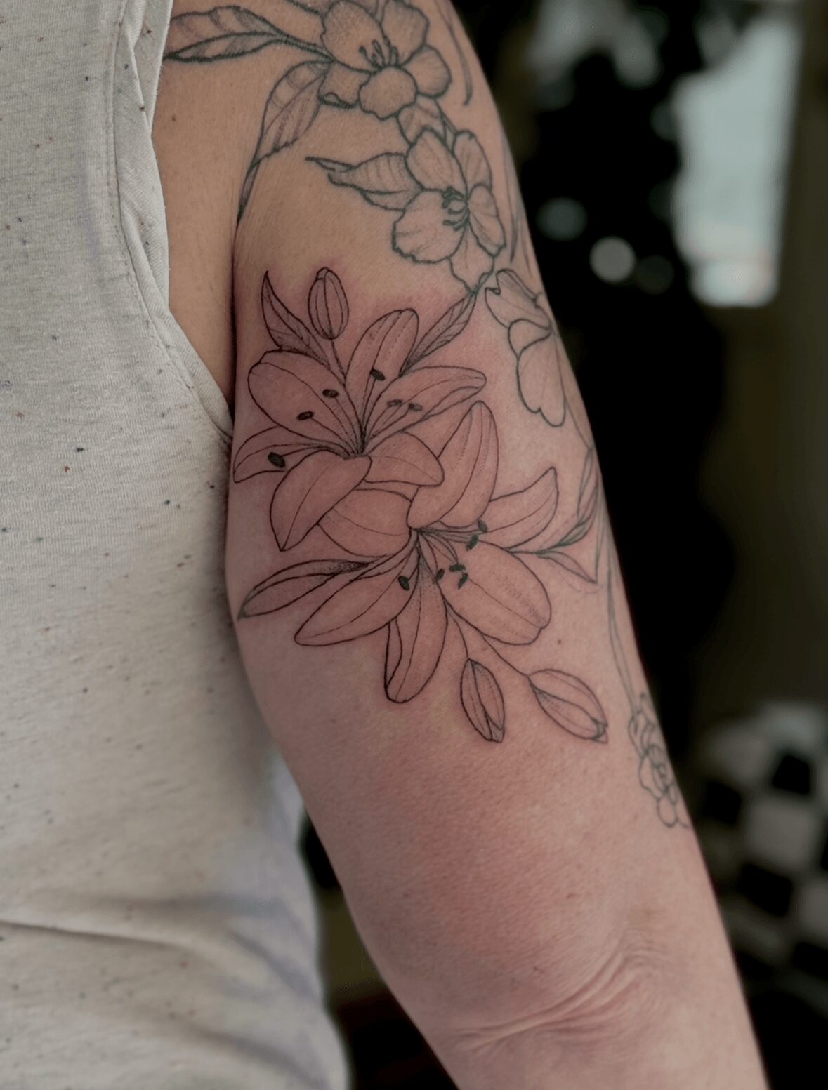 I am a tattoo artist and owner of Electric Love Tattoo located in Milford, Ohio. I am most known for my feminine traditional work and floral tattoos. My most common tattoos I do are anime, lots of florals, and there is probably a heart themed animal in there somewhere. I pride myself on creating a space where any client can come in, vibe out, and get a sick tattoo.