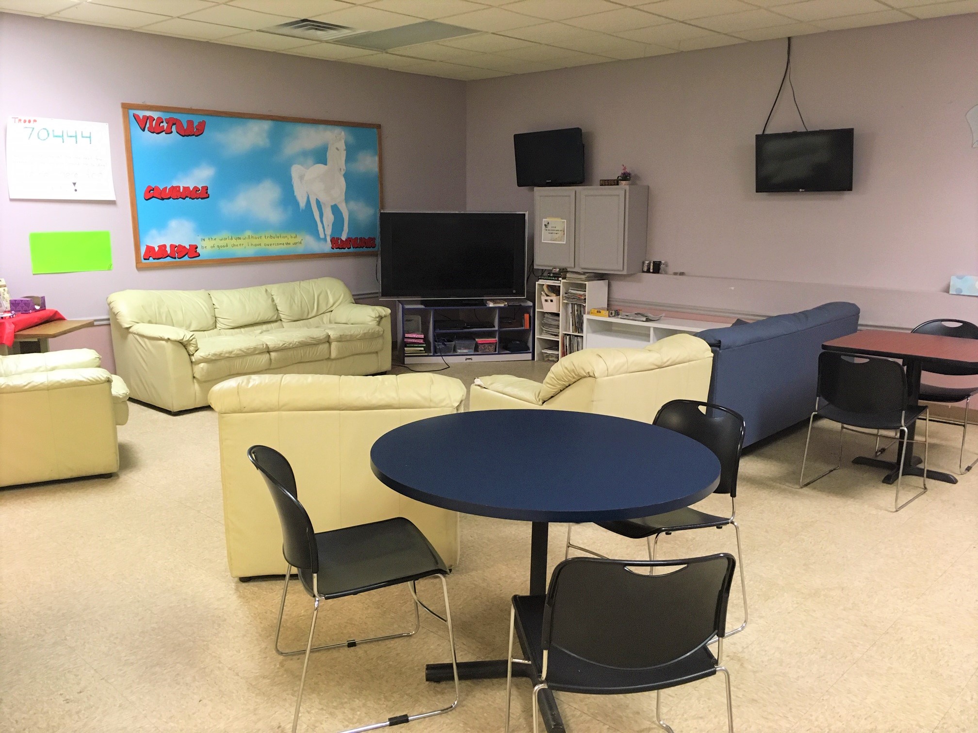 Staff work with each guest to set up goals, discuss progress weekly, assist with identifying the root cause of homelessness, provide education on available resources and maintain accountability for progress.