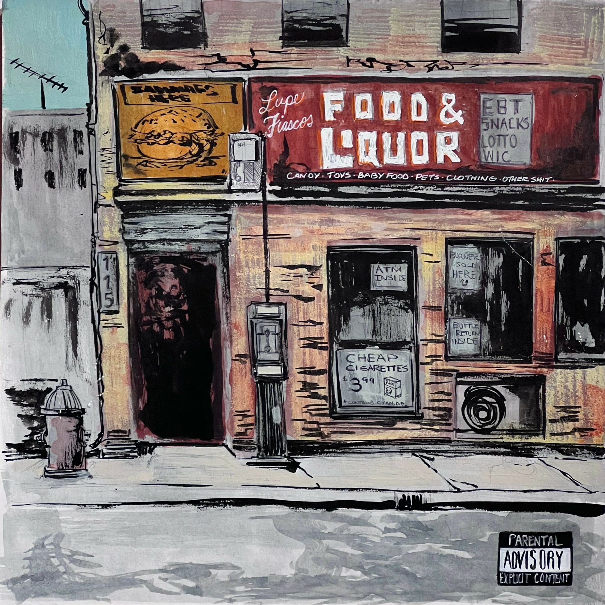 My name is Matt “Emskript” Thornton. I am an Illustrator, fine artist, educator and muralist. I’m a Veteran of the U.S. Navy. I like to use iconography and symbolism a lot in my work. It makes translating my art to other audiences much easier, showing them things that they recognize. Music, Hip-Hop in particular, is filled with icons, so it’s easy to find common ground and something to pull as far as inspiration goes. Stylistically comics and cartoons have always been what I use as reference, and keeping the same expressive colors and lines found in that medium is an important element of my style.