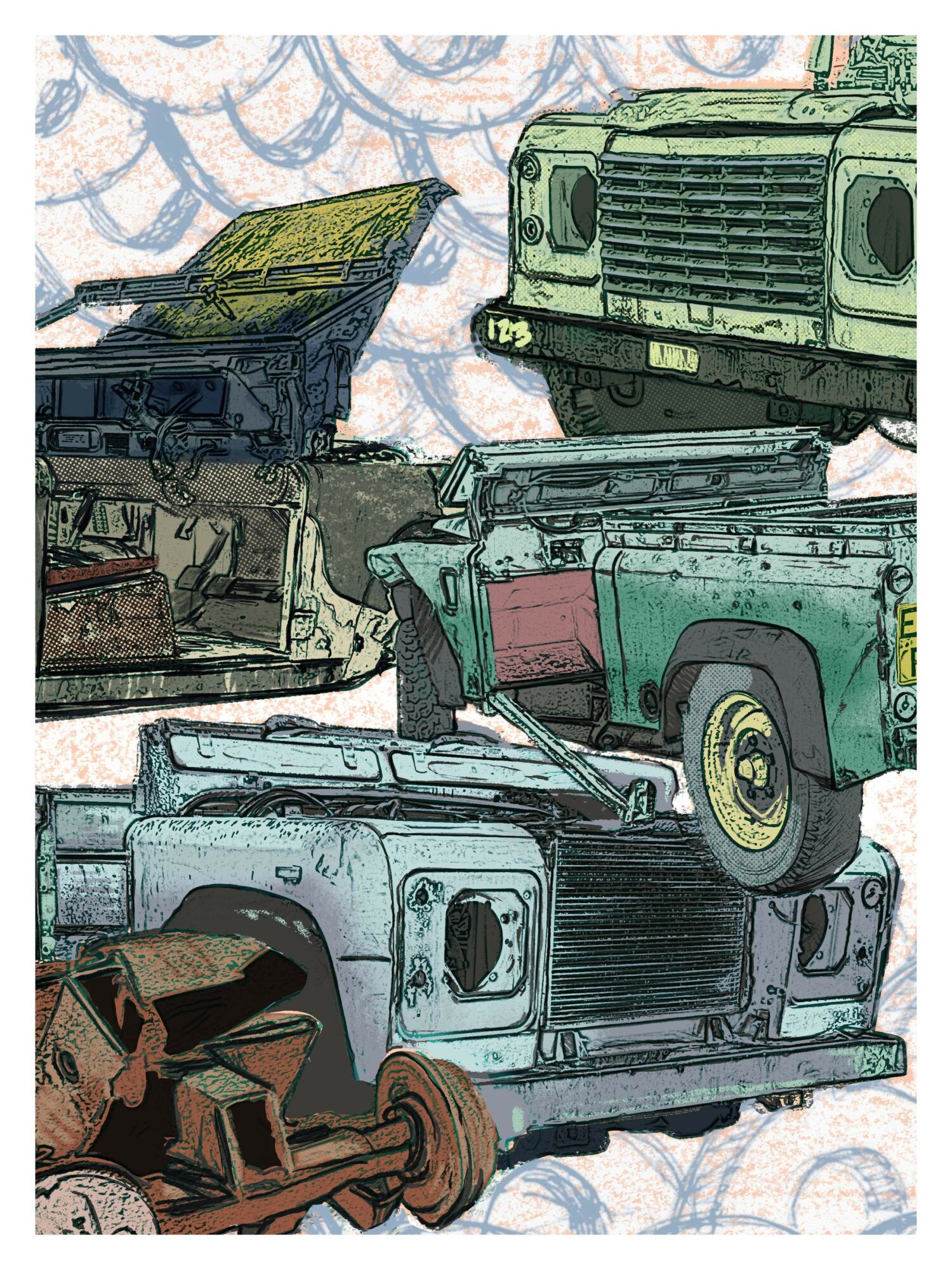 The thing I’m most known for at this point is the tire murals I’ve painted around the city of Detroit, and now Toledo. I always get compliments on the colors that I choose to use in my work. I’ve always considered choosing colors a weakness, so to be recognized and appreciated for that is something I really take pride in.