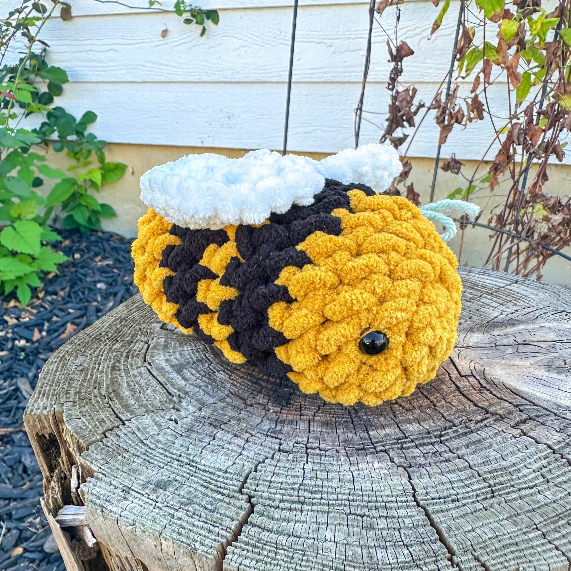 My gramma was the one who originally inspired me to learn how to crochet, but I never stuck with it for long. During COVID, I got hooked on crocheting because I saw cute little crochet bees on Pinterest and decided I simply had to have one. My crocheting was not great at first, and my bees looked nothing like the picture. They were lumpy, and the eyes were lopsided since I cut them out of felt. I didn’t give up and made at least seven bees of different sizes as I attempted to re-teach myself how to crochet.