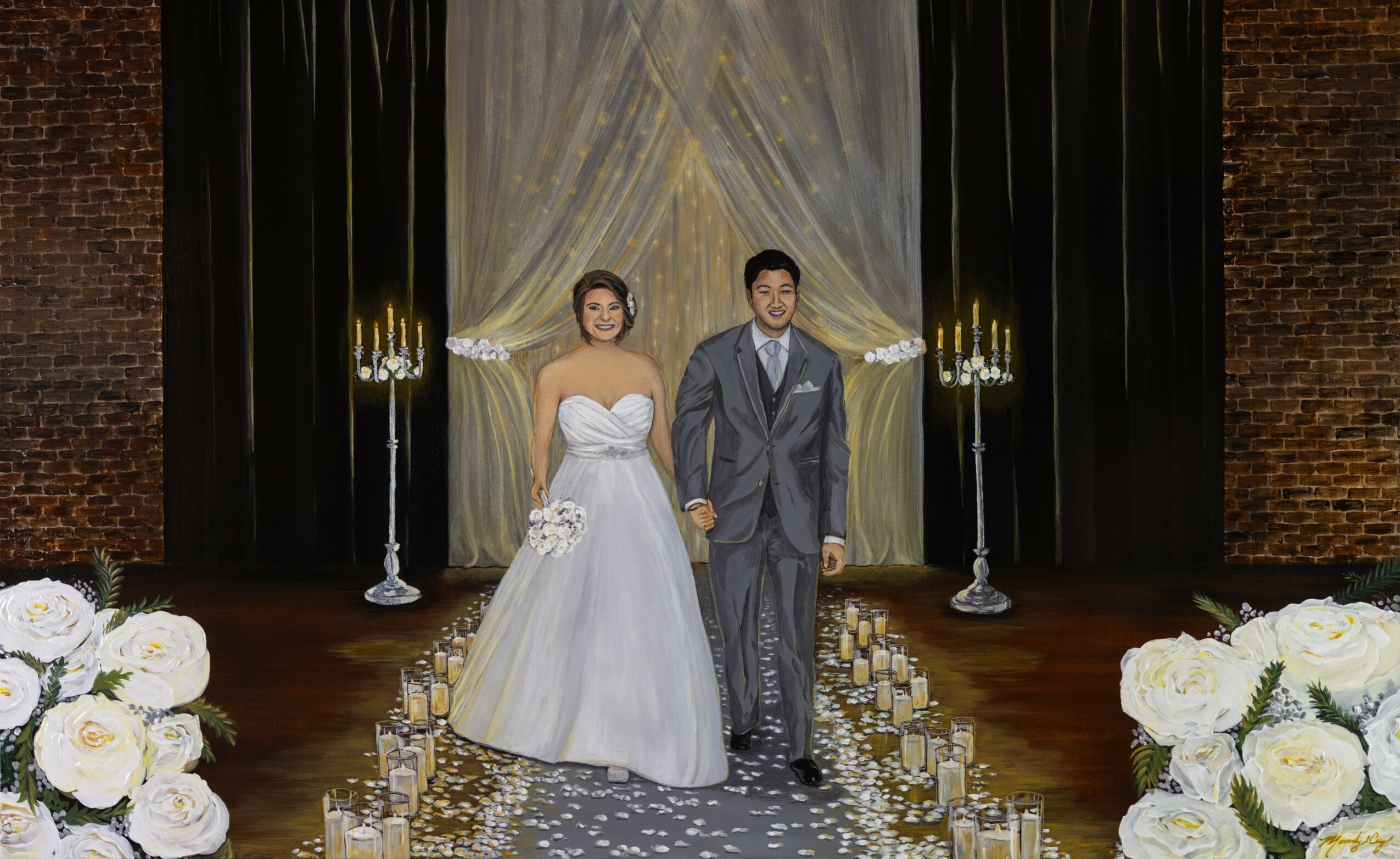 I am also known for my live wedding paintings, where I create heirloom-quality artwork during weddings and events. What makes this especially unique is that I complete the painting on-site in about six to eight hours, allowing the couple to take their finished artwork home with them at the end of their wedding day. It becomes both a form of live entertainment and a lasting, meaningful keepsake from their celebration.