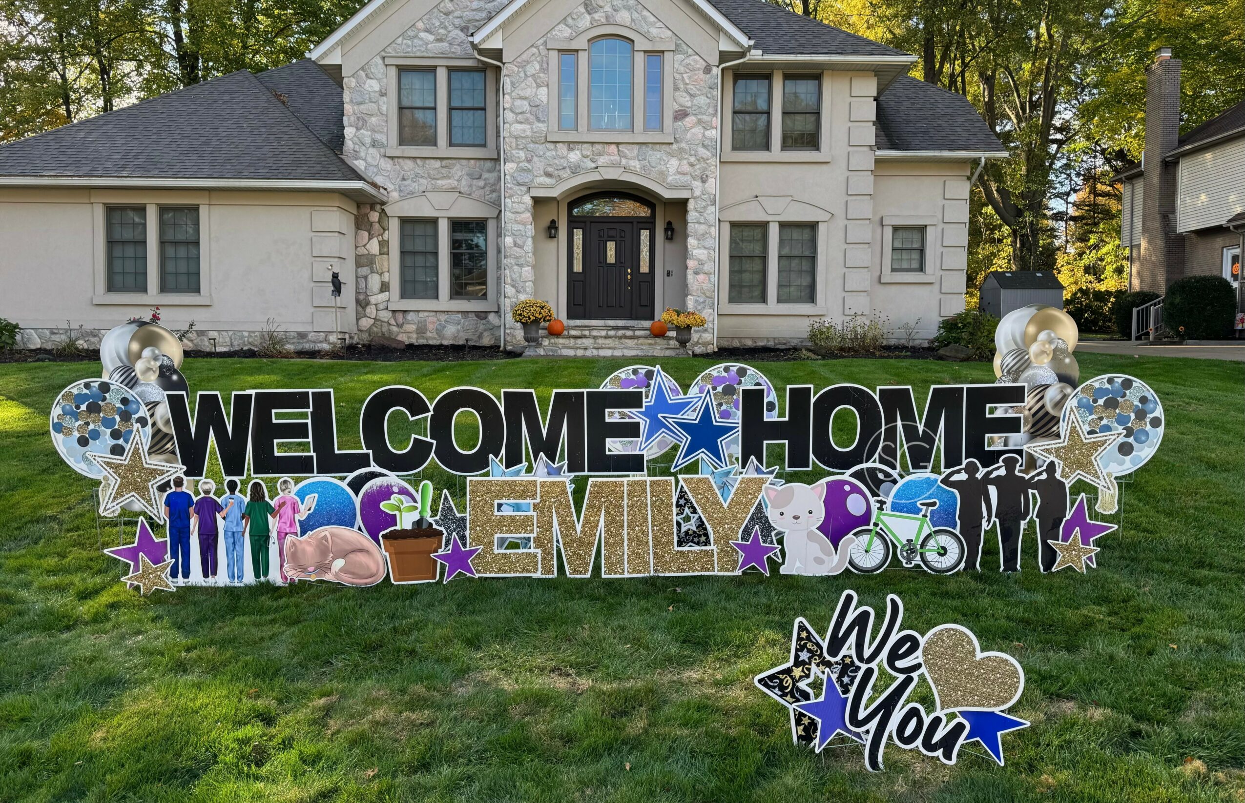 We first heard of SG yard signs in the spring of 2023. A friend of ours, in passing, mentioned that her colleague was moving out of Ohio and was looking to sell their business. We both started researching the company and found the franchise to be very interesting as we both were excited to get involved in our community through spreading joy! We contacted the seller and the rest is herstory…we shadowed to figure out how the business runs and we spoke with the CEOs of the franchise to learn more. Now, we are three years in and could not be more in love! Not only has it brought excitement to the communities we service but it has brought us closer to our children, who often join us in completing installations.