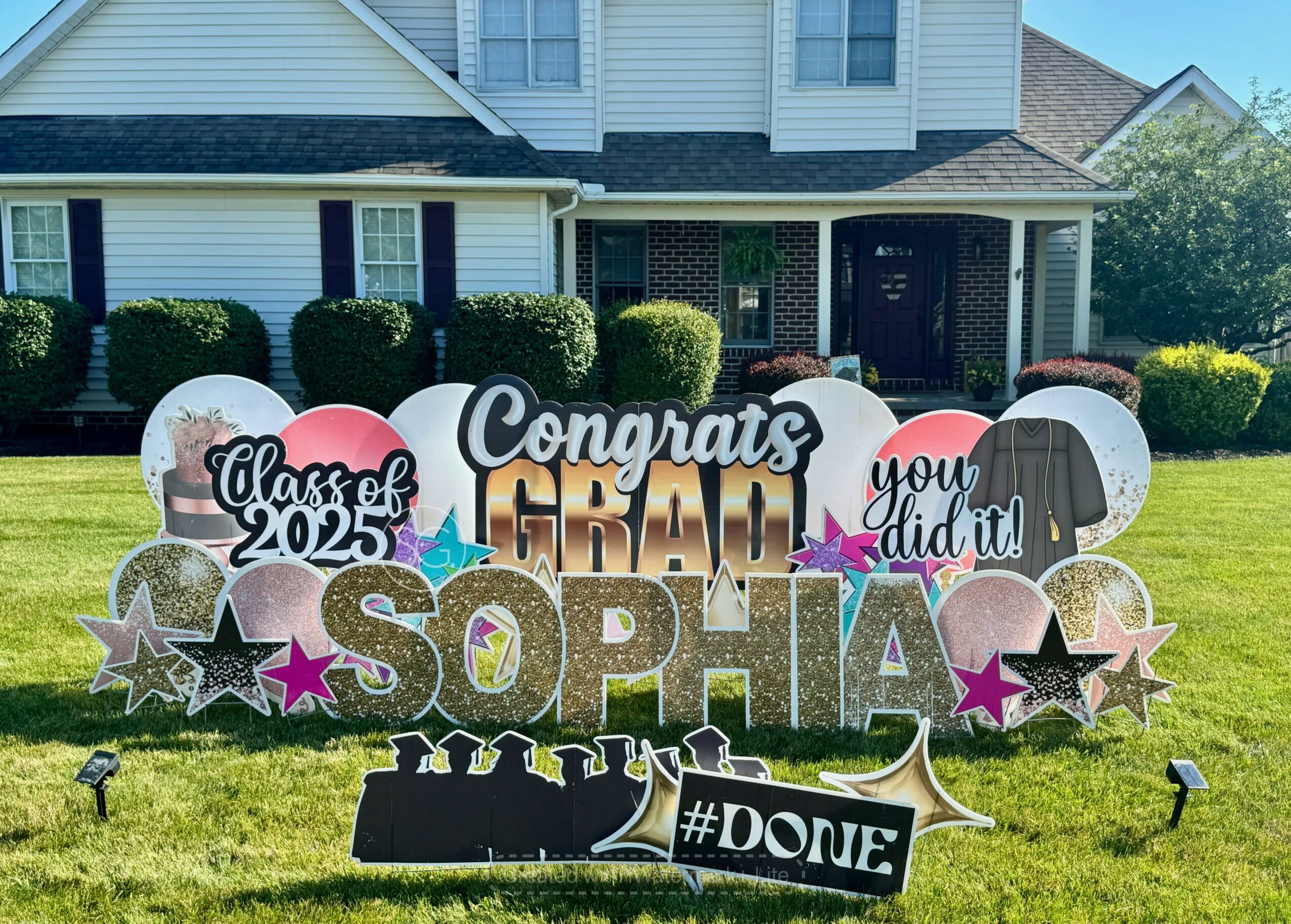 When we first took over the business there was a steep learning curve. Actually, there continues to be a learning curve as we strive to offer our customers new, fresh designs. We started our first few months during the busy season–graduation. This was challenging as we were trying to recruit others to help us, learn how to invoice customers, develop our style for engaging with customer, understand marketing etc. We had to balance this with also learning the heart of our business–doing a great installation. Even though each graduation season has gotten better because we have learned how much inventory we need available and we have developed good relationships with other nearby SG owners, there still continues to be challenges. For example, we have learned how to hire which is an ongoing process and we worked hard to recruit an intern in college which was an exciting experience and cost efficient. We have grown and learned a lot over the last three years, and continue to seek out new skillsets so that we can continue providing great service to our customers.