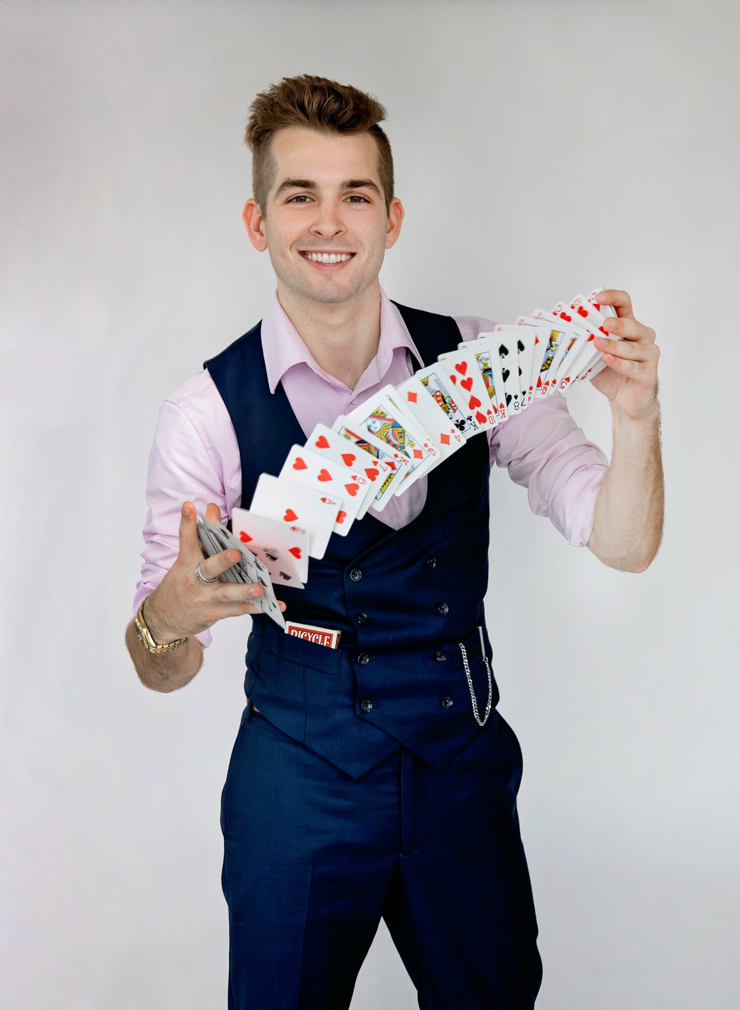 I’d say my magic is unique due to its variety and its spontaneity. It is like watching a comedian do crowd work as my magic has the same time of flow, can change due to the need for audience interaction, and also adds comedy throughout it. It is also ever-changing as some shows have more mental effects, cards, coins, Rubik’s cubes, swords, levitations, party poppers, dice, and so much more. At the end of it all, my job is not to show you how awesome I am, even though I am amazing, but to make sure you have a fantastic time. So if your crowd likes mind-reading more then let’s skip the sleight of hand card magic and blow some minds!