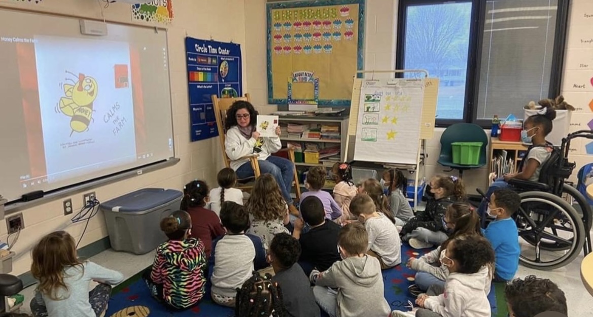 For first and second graders I offer BEE A HONEY BEE BOOK BUILDER. Along with the teacher, I help transform the students into budding authors & illustrators to become A HONEY BEE BOOK BUILDER. Together we help students create their own personalized classroom storybook. We work to get their creativity buzzing and watch them soar as they work together to create a classroom HONEY & FRIENDS storybook keepsake.