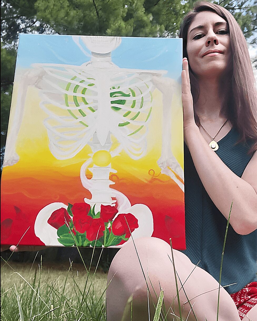 My interest grew enough that I opened an online store and began taking it seriously in 2019. After a few years of this part-time work, the injury occasionally flaring and another seemingly chronic condition developed, I began researching herbal remedies. This research, on top discovering the connection between our emotions and the physical repercussions – healed me. It seemed I would need to go all in to make my art business a success, and with these experiences to share, to help others who are dealing with chronic pain, I felt confident and passionate enough to do so. Now, since June 2024, I quit my other forestry job and have been focused on sharing these mind hacks, talking about medicinal wild edibles, and painting the individual species with some of my surreal flair in the background.