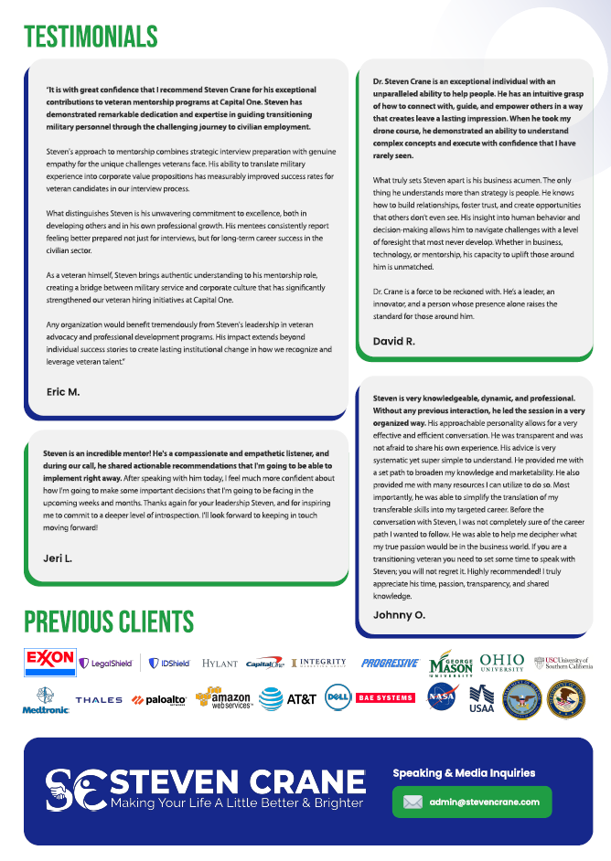 Today, I am known for building an ecosystem of support through multiple initiatives and companies focused on the real problems facing working-class families, veterans, and everyday Americans. My work centers on financial education, strategic planning, and long-term empowerment, helping people gain clarity, rebuild stability, and take control of their futures. Drawing from both my professional expertise and my own life story, my mission is simple: to meet people where they are, provide honest guidance, and help them build a stronger financial foundation for themselves and their families.