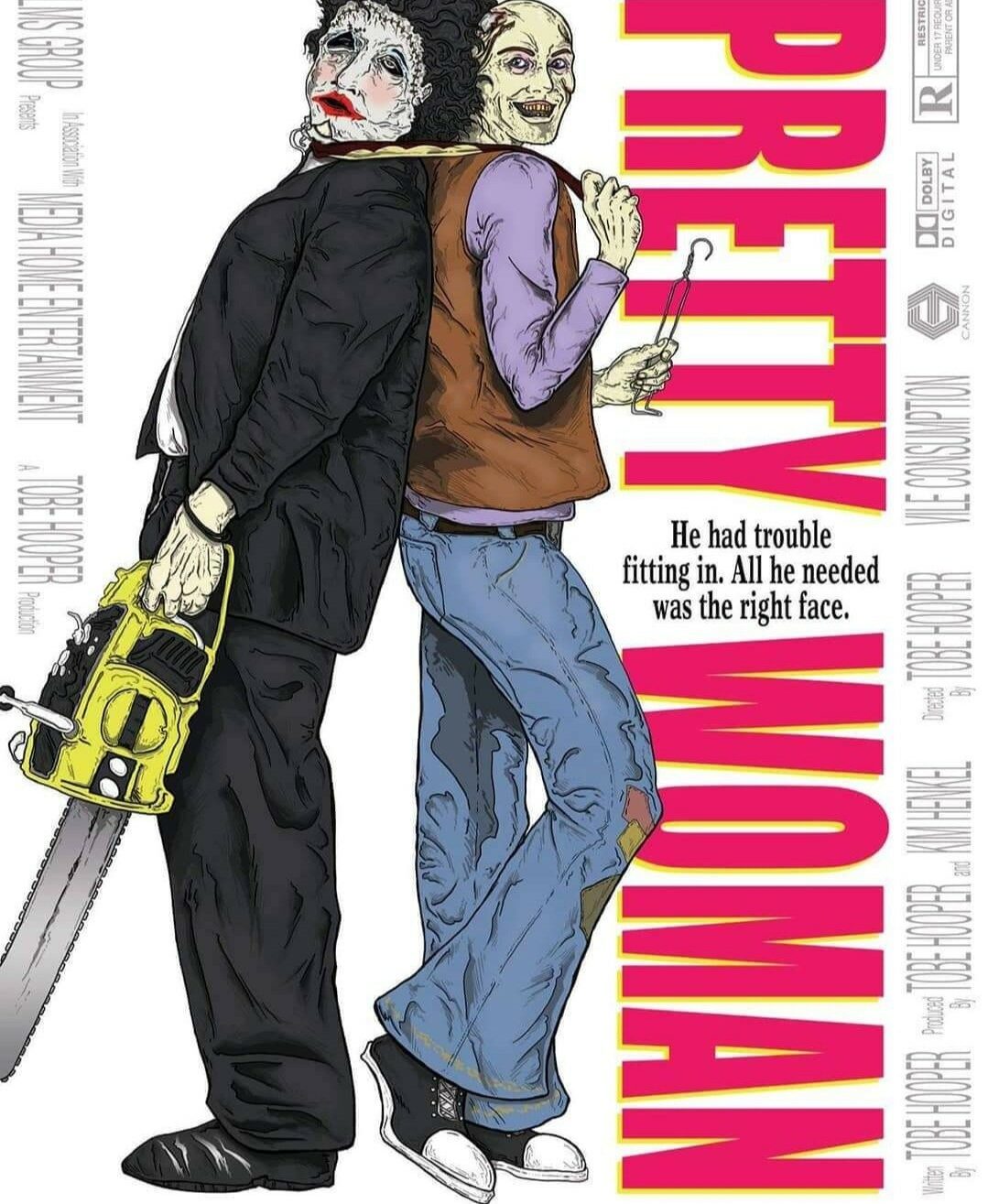Horror art, comic book mashups, pop culture-referenced art, dark humor; the piece I’m most proud of is my Pretty Woman/Texas Chainsaw poster