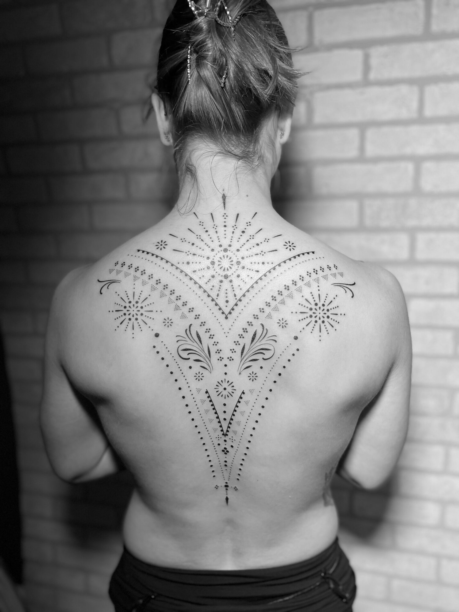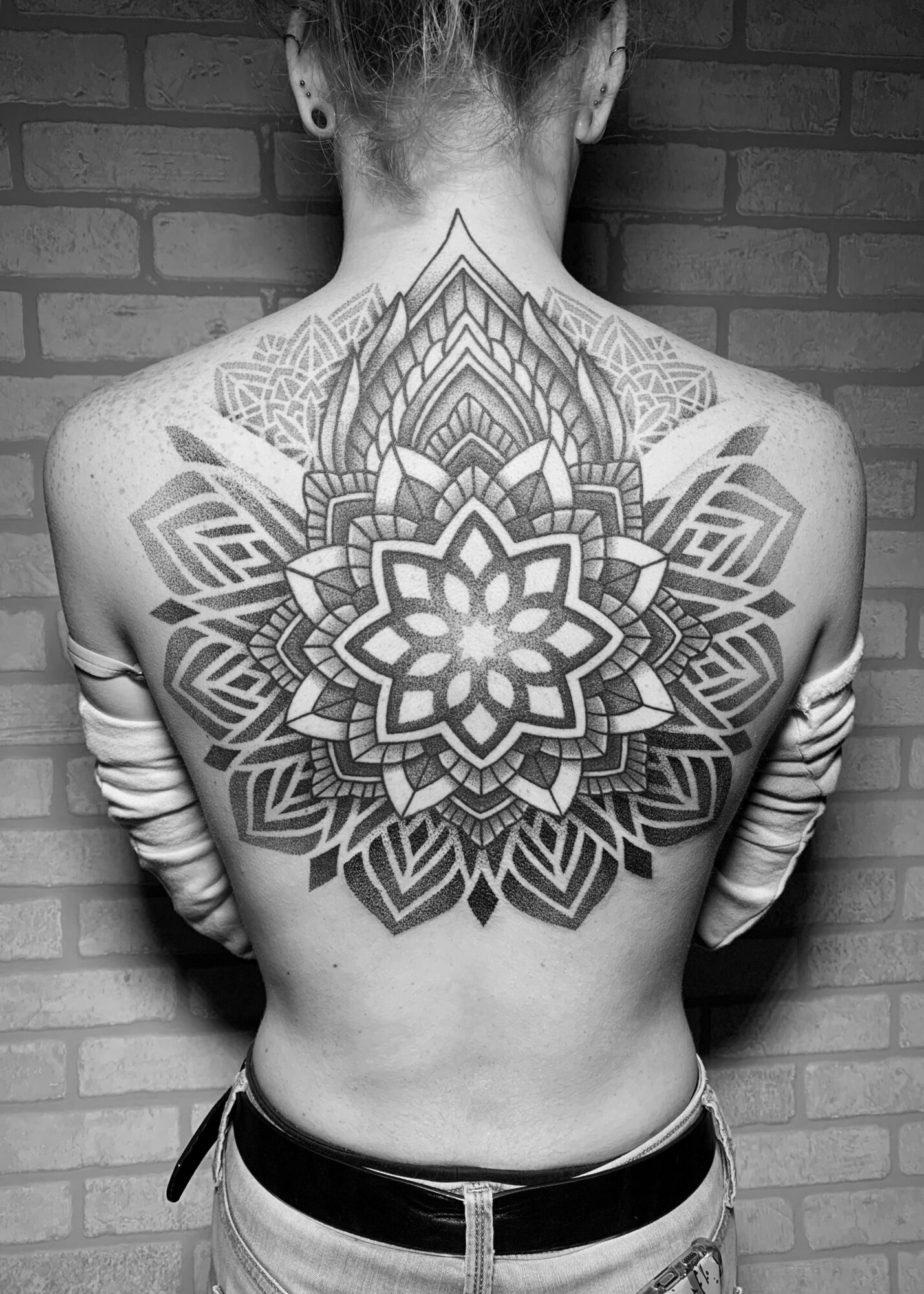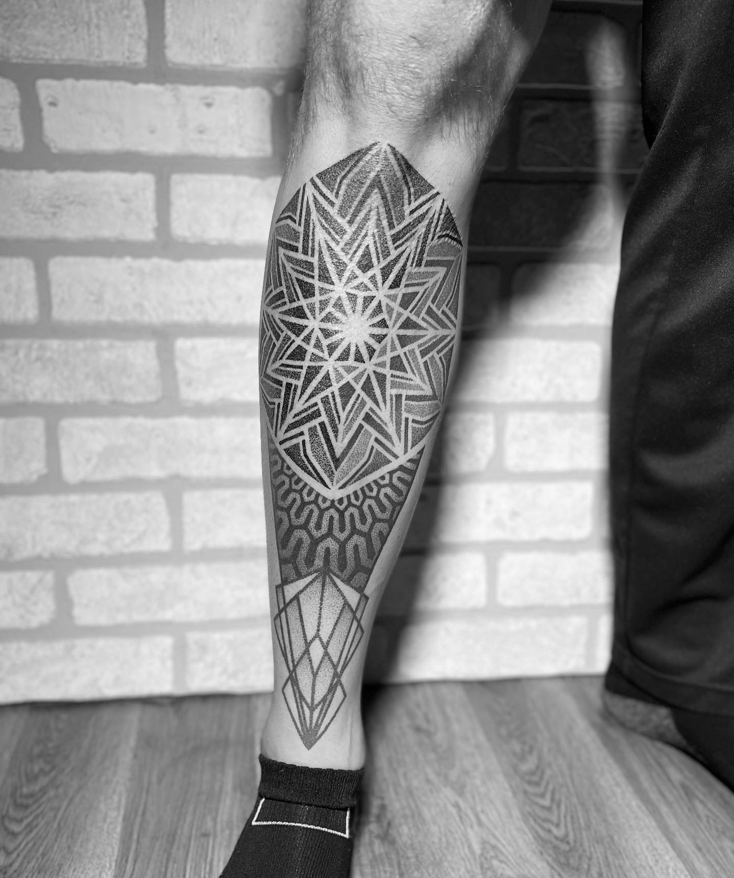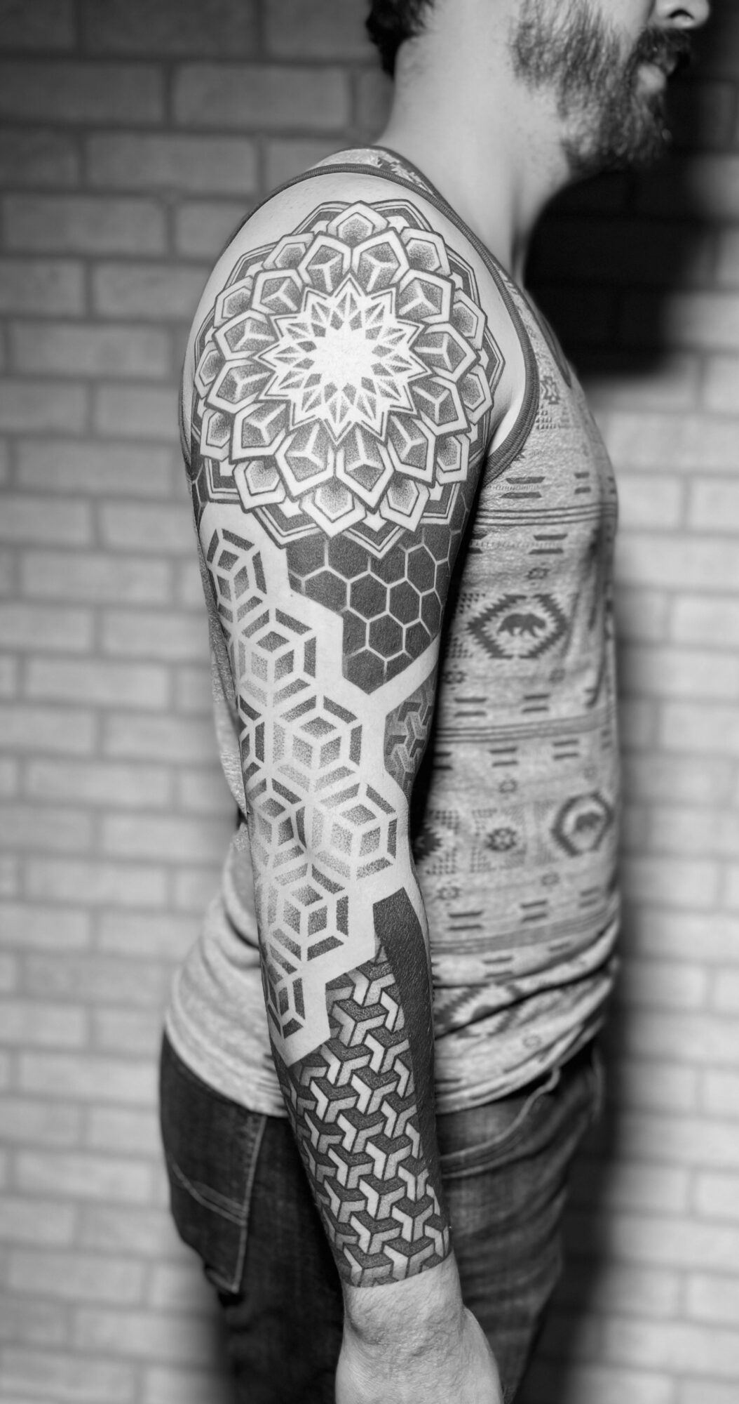 I specialize in a few different styles, mainly geometric, ornamental, and black-and-gray realism. I have always enjoyed realistic pencil drawing, while ornamental and geometric pieces draw a lot on my design background. I like to create intricate designs that fit nicely on the body and are visible across the room.