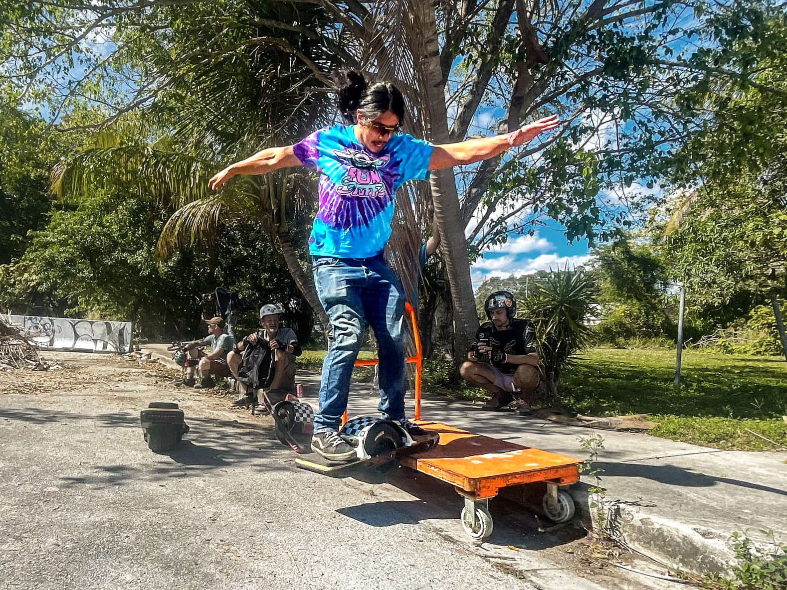 I raced in several national races put on by the manufacturer, Future Motion, with their premiere race, Race for the Rail being a huge highlight. The scene continued to grow with races, trick competitions, and many festivals that brought out an eccentric but passionate array of riders and creators which led to us continuing to develop products for the Onewheel. We even started making Onewheel specific tires, first with Hoosier, then with a custom vendor that now makes our bespoke tires.