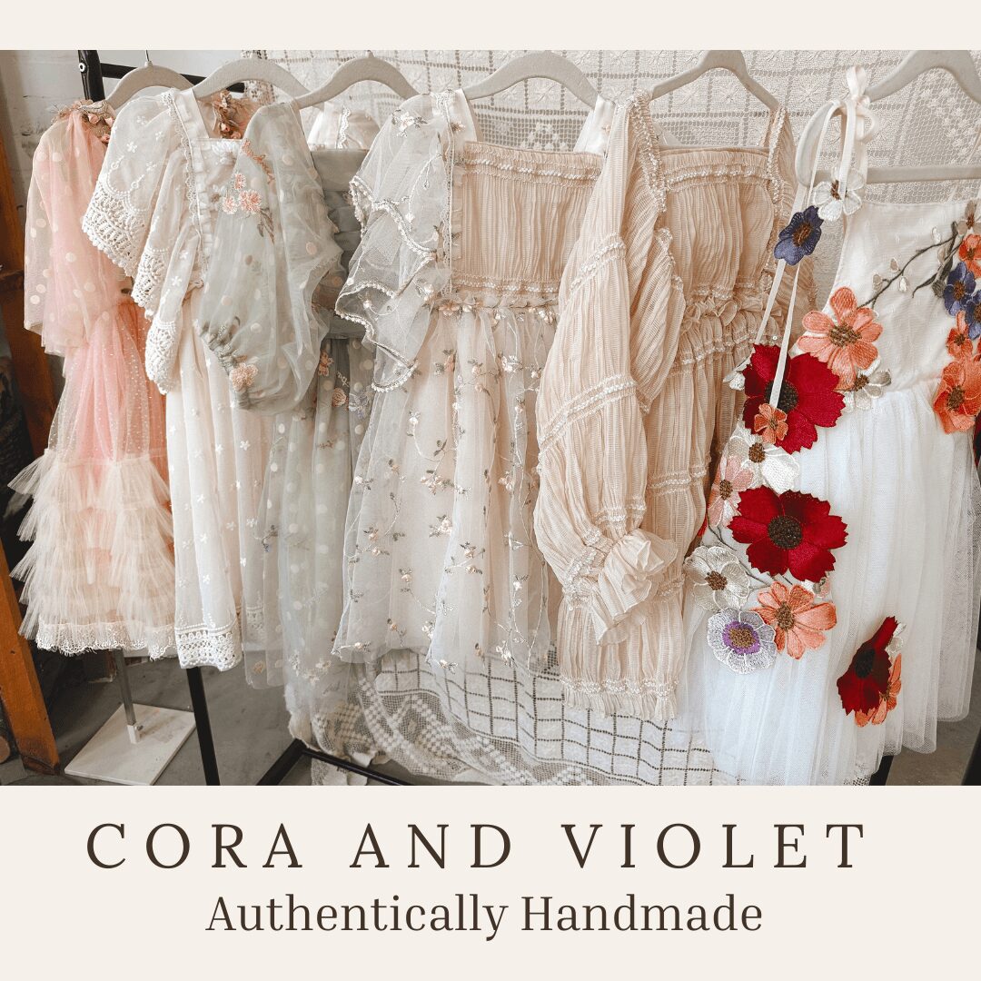 I specialize in baby and children’s special occasion wear. Flowers girl dresses and one of a kind birthday dresses you can’t find anywhere else- That’s Cora and Violet. My designs are a window to my soul, inspired by the nature surrounding me, I try to find beauty everywhere.