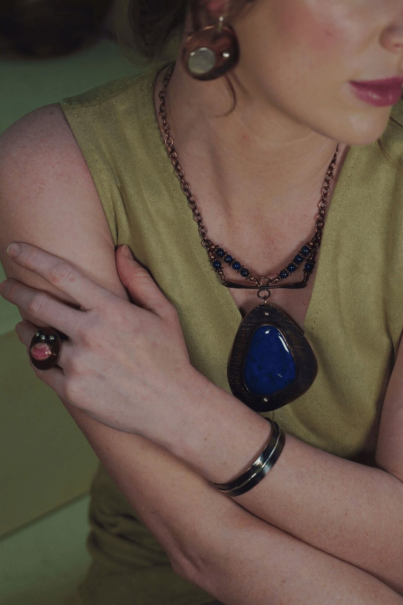 Bohemian. Eclectic. Modern. Funky. Earthy. You could use any of these words to describe the bold, eye-catching, handcrafted jewelry from Junebug Designs. Made especially for fashionable women with exceptional taste, each striking and intricate design is a work of wearable art made with high-quality materials and lots of love. I use Copper, Argentium Silver, and semi-precious gemstones to create my designs. Each piece is meticulously handcrafted in my small-batch studio. I like to assign messages and meaning to my creations so they are more than just adornments. I want them to be seen as heirlooms worthy of passing to future generations. I am mainly known for mixing copper and argentium to create bold designs. The contrast of the two metals is so beautiful.