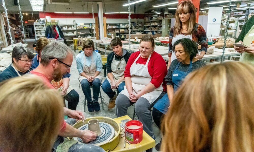 Each employee at the shop is also an artist. Our large accounts manager is an incredible sculptor and hand builder. Our Education Director is one of the best functional potters in the country. Every single position is filled with someone who can pull their weight on the clay art side as well as the business side. We all specialize in clay work, but some are functional potters while others focus on clay sculpture. Our Artists in Residence are either established clay artists with an international reputation or clay artists at early stages in their career. What sets us apart as a staff and a business is that we are all extremely passionate about teaching. We want our students to have the best experience possible. Our focus in the classroom is as much on community building as it is on clay technique. Our teachers are the best in the business, and that in itself is an art form.