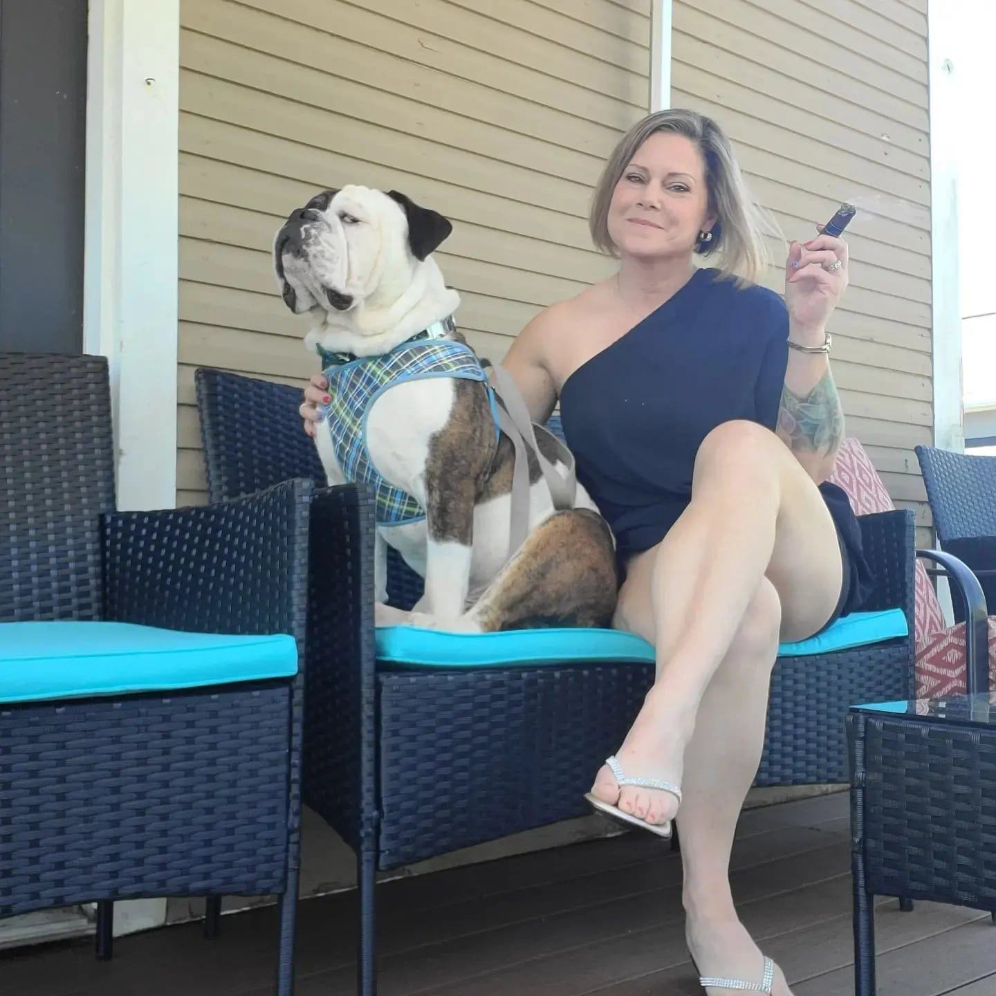 Our shop dog Winston (olde English bulldog rescue) is truly the star of the show. He greets everyone, accepts pets, and our regulars are always bringing him treats. He is very spoiled.