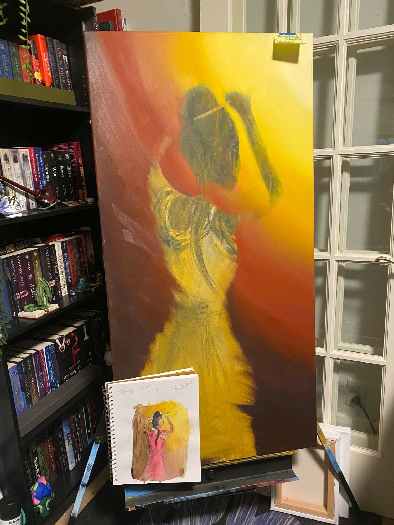 I don’t work during typical hours being a night owl by nature. I start my day at 1pm with a hour and a half to wake up and watch a movie or show to have a breath before diving into work. For the next two hours I do a lot of behind the scenes. Photographing and videotaping works in progress and any finished pieces for social media and photos for my online shop. And then, corresponding with clients, galleries, and art event coordinators. Next is usually researching references for my more complex works which can be images or written information. After that, I take time for a short break before starting for the night of painting. I typically start around 8pm getting the studio organized and prepared for which painting or paintings I will be working on. Since I work in multiple mediums, each piece of work can be a little different. I spend about two hours at a time painting, taking on average thirty minute breaks to allow things to dry and to move around to keep my pain manageable. I stop around 1am for the day and read for a few hours before going to bed. I do my best to give myself time to do the things I like daily as they are a large part of what inspires me to create, such as reading, gaming and what I watch. Art influences art.